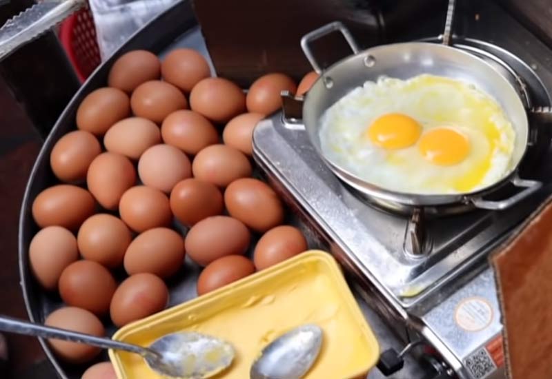 Trứng rán làm món bánh mì chảo Phan Thiết