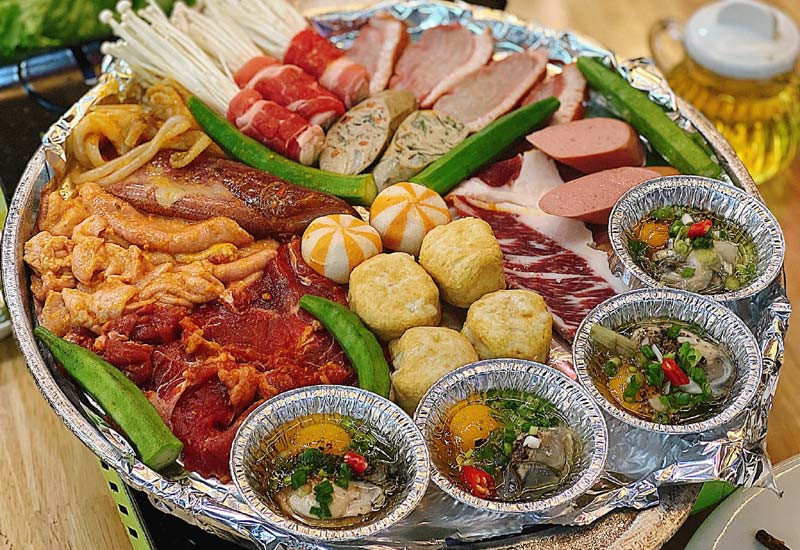 Buffet bò nướng sốt me ăn kèm phomai mozzarella chuẩn vị, cả lẩu thái cực đỉnh, Quán có menu đa dạng từ bò bẹ hải sản đều tươi ngon xịn xò, kèm thêm nước sốt me chua ngọt cay tê với vị béo ngậy của phomai kéo sợiQuán Huca Bbq & Hotbot