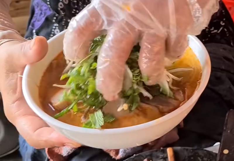 Cho thêm rau sống lên tô bún