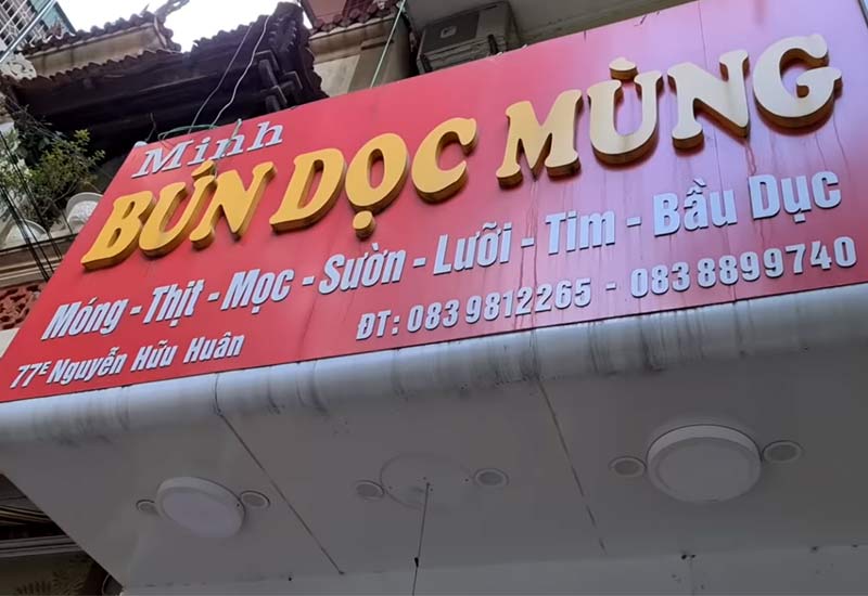 Quán bún dọc mùng của cô Minh chuyên bán bún móng - thịt - mọc - sườn - lưỡi - tim - bầu dục với dọc mùng ngon ở phố Cổ Hà Nội, Kính mời thực khách đến thưởng thức.