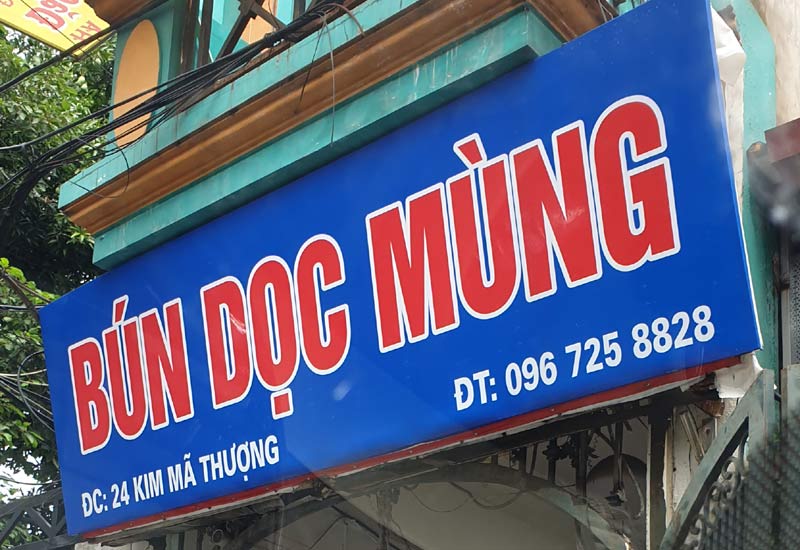Quán bún dọc mùng ở phố Kim Mã Thượng, Cống Vị