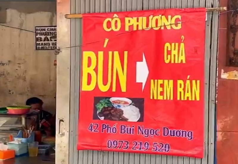 Cô Phương bán Bún Chả và Nem Rán cực ngon và đông khách ở địa chỉ: 42 Bùi Ngọc Dương, Bạch Mai, Hai Bà Trưng, Hà NộiCô Phương Bún Chả Nem Rán