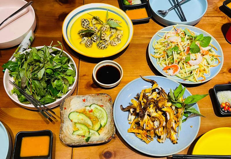 Từ Cua Năm Căn đặc sản: cốm vàng ươm béo ngậy, thịt núc ních thơm ngon, gạch đỏ son bùi ngọt; tới Sò huyết tự nhiên khổng lồ mò bắt từng con; Ốc hương tự nhiên, Bạch tuộc hai da giòn ngọt, Mực trứng câu Cô Tô, Mực ống Cô Tô tươi rói, tới các loại hải sản ngoại nhập như Cua hoàng đế, Tôm hùm Alaska, Hùm đỏ Úc hay Cá bơn Oliver, Sò điệp Nhật,...Nhà hàng Hải Sản Tomato