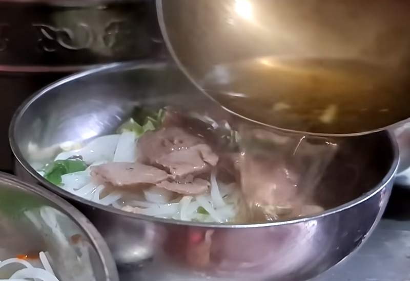 Nồi nước lèo được hầm từ xương ống heo, tuyệt đối không bỏ bột ngọt, chủ quán cho hay. Vì vậy, nước có độ trong, mùi thơm đặc trưng và vị ngọt tự nhiên