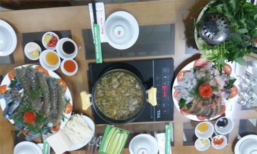 Còn nếu bạn là người thích ăn hải sản thì khu vực trung tâm giữa Tầng 1 quả là một điểm hẹn thú vị. Các loại hải sản tươi ngon, đẹp mắt, phong phú về chủng loại như ghẹ, hàu tươi, ngao, sò, … được chế biến với nhiều hương vị khác nhau từ quen tới lạ, sẽ mang lại cho thực khách những cơn gió mát và vị mặn mòi của biển cả ngay giữa trung tâm thành phố Uông Bí Tỉnh Quảng Ninh.