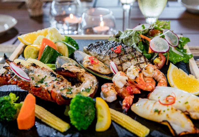 Khi mặt trời xuống núi là lúc nhà hàng Pezca hiện ra mờ ảo dưới làn nước trong veo của đêm tối tĩnh lặng. Trong hương vị của ly champagne, chắc chắn bạn sẽ có một chút ngỡ ngàng trước vẻ đẹp ma mị đến khó cưỡng của dải Ngân Hà và những vì tinh tú sáng rực cả một vùng trời tại Fusion Resort Phú Quốc-Spa trọn gói.Nhà hàng Pezca - Khu nghỉ dưỡng Fusion Phú Quốc
