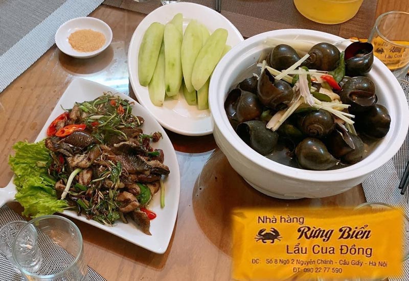 Tinh hoa ngũ vị lẩu mang đến hương vị đa vùng miền từ lẩu cua đồng, lẩu tôm bầu, lẩu dê thuốc bắc, lẩu ốc nhồi, Menu gần 50 món đặc sắc với list khai vị bao ngon: cháo bắp hoa bò, cháo dê, salat cà chua, măng trúc chấm mẻ, khoai tây cà chua tóp mỡ, cháo trứng non,...Nhà Hàng Rừng Biển - Lẩu Cua Đồng