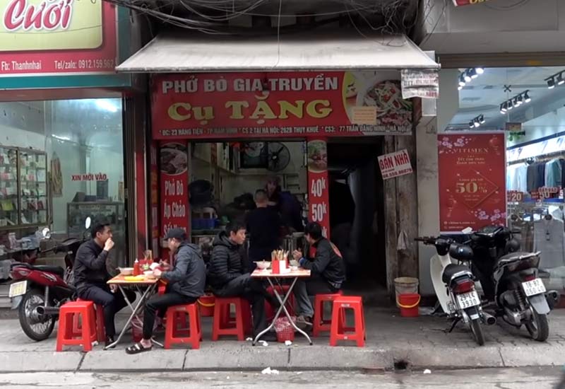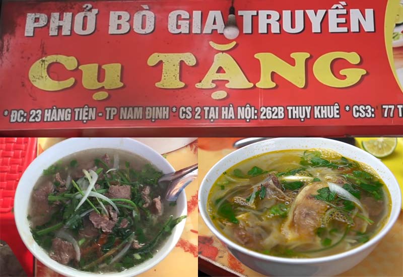 Quán Phở Bò Gia Truyền Cụ Tặng ở thành phố Nam Định chỉ phục vụ phở bò áp chảo, phở bò sốt vang và phở bò tái Nam Định, quán mở từ 6h sáng đển 10h là hết, phở ngon, đậm đà, nhiều thịtPhở Bò Gia Truyền Cụ Tặng