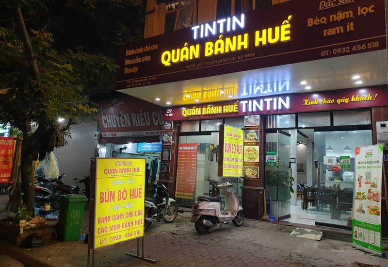 Quán Tin Tin đặc biệt với các món bánh: bánh bèo chén, bánh bột lọc, bánh nậm, bánh ram ít, bánh canh chả cua và bún bò Huế. Nói đến bánh Huế ngon. Sạch. Chất lượng thì cái tên Bánh Huế Tin Tin ko còn xa lạ gì với thực khách Hà Nội nữa rồi nha Quán Bánh Huế - Bún Bò Huế