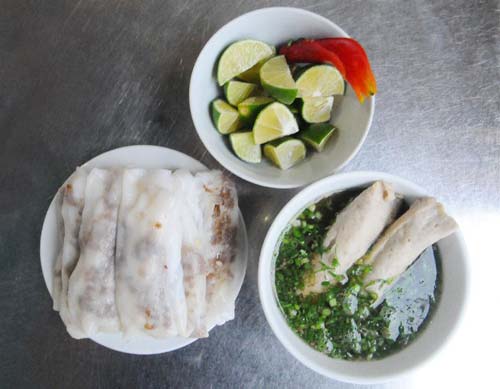 Người phụ nữ bán bánh cuốn tay đều đặn không ngơi nghỉ, vừa trông lò để củi cháy đều, canh lúc bánh trong nồi vừa chín (bánh mỏng chín rất nhanh) thì nhanh tay dùng một chiếc đũa cả hớt bánh ra, (nếu là bánh cuốn trứng thì đập thêm vào quả trứng rồi lại đậy vung lại để một lúc), vung nồi mở ra nghi ngút khói, rồi lại thoăn thoắt tráng một muôi nước bột bánh vào trong khuôn. Lúc này, bánh mới bỏ ra để trên mâm được trải đều một lớp nhân thịt băm xào thơm và cuốn đều, một chiếc bánh cuốn đã xong.