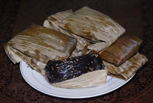 Gạo nếp hoa vàng ngâm nước khoảng 2 giờ, đãi sạch rồi đem xay thành bột mịn. Hai thứ bột đó đem trộn đều vào với nhau theo tỷ lệ 5 phần bột nếp 1 phần bột lá gai, rắc đều thêm chút lạc rang giã vụn. Tất cả đem trộn với mật mía cho vừa đủ dẻo để có thể nặn thành những tấm bánh có nhân bên trong bằng đỗ xanh đãi, thêm chút sợi cùi dừa điểm mứt sen, dầu chuối… Lăn bánh qua vừng đã rang rồi dùng lá chuối khô gói lại hoặc nặn tròn hình bánh xe vuông quân cờ rồi bao quanh bằng mảnh lá dừa. Thích chơi chữ thì hai mặt bánh được khéo léo rắc vừng hiện lên những chữ to tuỳ ý, từ “Phúc - Lộc - Thọ” đến cả hàng câu đối, bài thơ hoặc cả bộ quân cờ tướng…