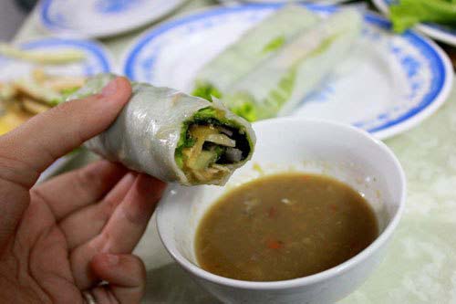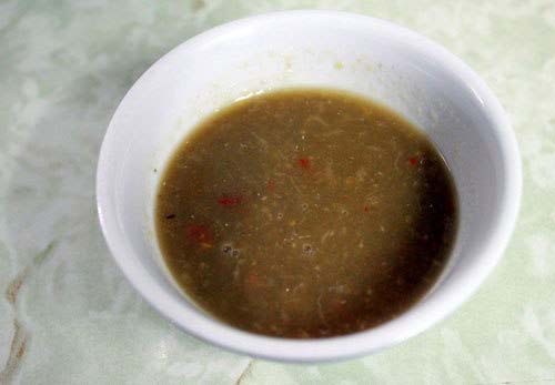 Điểm đặc biệt của món bánh tráng cuốn thịt heo là nước chấm mắm nêm. Mắm nêm ở đây được chế biến đặc biệt từ cá biển, gia giảm vừa miệng với dứa chín băm nhỏ, ớt tươi, chanh giấy, một chút tỏi và gừng. Thứ nước chấm này vừa đậm đà vừa có mùi vị độc đáo đặc trưng, khiến món ăn càng trở nên hấp dẫn.