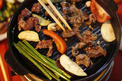 Khi tiết trời Hà Nội mới chuyển sang se lạnh, các quán bò nướng trên con phố nhỏ đã chật cứng cả khách Tây lẫn khách Việt Nam.