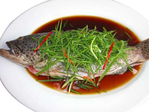 Cá song hay còn gọi cá mú là loại cá mang đậm “hương vị biển” bởi lớp da béo giòn, thới thịt dai trắng thơm ngọt mà ít loài cá biển nào sánh được. Ở Cát Bà có 3 loại là cá song mỡ, song đen và song cáo. Từ cá song người ta chế biến nhiều món ăn hấp dẫn, bổ dưỡng như: gỏi, cháo, lẩu, hấp, sốt, nướng…