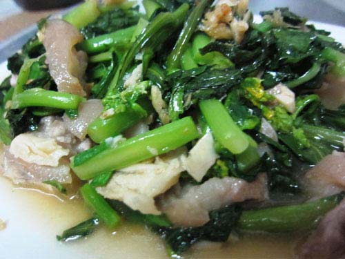 Để ăn ngồng cải, người ta cũng chế biến như đối với các rau thường dùng: có thể xào, luộc hoặc nấu tuỳ ý thích mỗi người. Nhưng cách làm ngon nhất, hấp dẫn nhất vẫn là xào chung với thịt bò. Để có được đĩa cải ngồng xào thịt bò thơm ngon, cần phải chọn thứ cải có thân nhỏ xanh non, khi xào nhớ phải cho thêm gừng và không nên xào kỹ quá khiến thịt bò bị dai và cải mất đi vị thơm. Món xào này tốt nhất là nên ăn nóng. Vị ngọt thơm của ngồng cải lẫn mùi thơm của thịt, của gừng sẽ khiến người ăn phải vội vàng nếm thử ngay như sợ nếu không nhanh thì cái mùi vị hấp dẫn kia sẽ tan biến hết vào không gian.