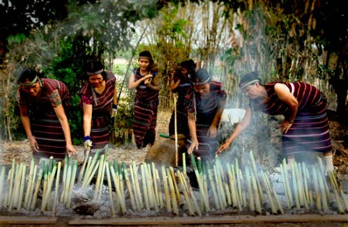Cơm lam được ăn với muối vừng hay thịt. Cơm lam là món ngon dân dã của đồng bào Tây Nguyên, chứa đựng tình cảm, mùi thơm của lúa gạo, mùi thơm của tre nứa từ rừng núi Tây Nguyên bạt ngàn. Nếu có dịp đến Tây Nguyên du khách đừng quên cơm lam, muối vừng, món ăn dân dã nhưng đầy ấp nghĩa tình của đồng bào nơi đây.