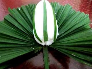Nắm cơm được nắm bằng lá cọ trắng mịn hình trái bưởi có những đường sọc đều đặn của gân lá cọ trông đẹp mắt. Dùng dao cắt ra từng miếng cơm trắng mịn, bùi ngọt, thơm mùi gạo quê lẫn mùi lá cọ Cơm nắm lá cọ chấm với muối vừng, muối sả hay sườn lợn rang muối đều rất ngon.