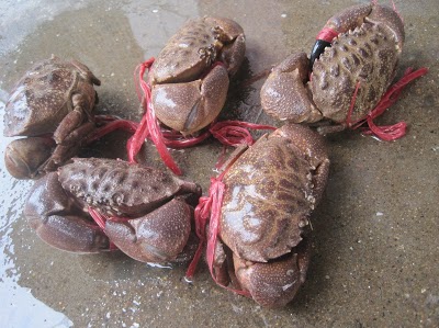 Loài cua này có thể dễ dàng được nhận ra bởi mai màu nâu, mắt màu xanh lá cây sáng và hai càng rất to. Nó sống trong khe đá, mảnh gỗ dọc theo các vách đá bờ biển và rừng ngập mặn, cũng như trong vỏ trai, trang trại nuôi trồng thủy sản, nhà bè và đê chắn sóng, nó rất chậm chạp, bám vào đá rất chắc chắn. Chúng có thể phát triển đến kích thước lớn (chiều rộng lên đến 12 cm), ăn các loài phù du, giáp xác nhỏ.