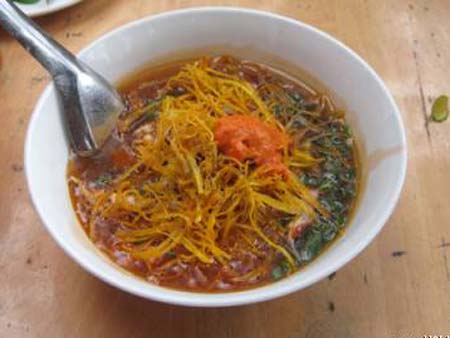 Cuốn sủi còn được gọi với cái tên phở khan, khá giống với món phở Tíu. Cũng là bánh phở trắng mềm dưới bát, phía bên trên lớp phở được rắc chút mỳ bằng củ dong rang ròn cùng thịt bò, gia vị được nấu sền sệt thành một thứ nước sốt có hương vị riêng. Trên cùng của bát cuốn sủi là hạt tiêu, lạc, rau thơm và vài lát ớt.