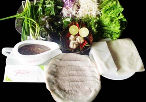 Cũng chỉ là một món ăn cuốn dân dã nhưng bánh tráng cuốn thịt heo có thể để lại những ấn tượng khó quên cho thực khách. Bí quyết chính của món là đĩa thịt heo, loại hai đầu da được chọn từ phần ngon nhất của con heo. Muốn chọn được thịt ngon như vậy, phải chọn heo nặng từ 50 - 70 kg và lấy khoảng 5 kg thịt mông. Thịt heo này được hấp để giữ vị thơm ngon, ngọt sắc đậm của thịt, khi miếng thịt cắt ra có mỡ trong là đạt tiêu chuẩn.