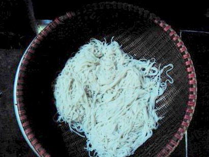 Công đoạn làm bún Tày cũng kỳ công hơn các loại bún khác. Nguyên liệu làm bún là gạo tẻ. Gạo làm bún không cần phải chọn loại gạo ngon lắm, thậm chí có thể làm bằng loại gạo cũ để lâu thì bún vẫn ngon. Thời gian để làm được món bún này là độ một tuần.