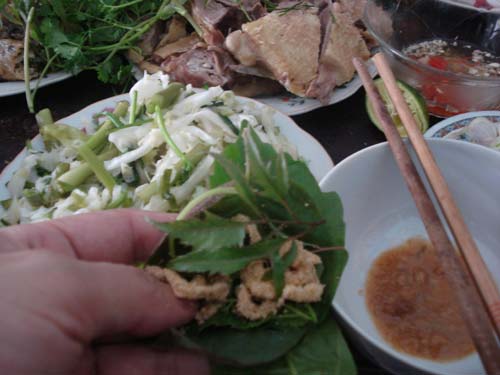 Là một đặc sản của Kim Sơn, gỏi cá nhệch là món ăn có vị thơm và bùi đặc trưng. Vẫn là những nguyên liệu cơ bản của món gỏi cá như lá đinh lăng, mơ lông, thính nhưng món ăn này lại được nhiều người yêu thích hơn cả nhờ hương vị đặc biệt của cá nhệch. Đây là một loại cá cùng họ với lươn nhưng có bề ngang giống cá trình. Cá nhệch bắt về được làm sạch trong nước vôi trong và nước tro sau đó lọc xương, cắt phần thịt cá thành lát mỏng. Nếu như các món gỏi cá khác được cuốn cùng bánh đa nem thì người Ninh Bình khi ăn món này lại chỉ cuốn bằng da cá rán hoặc bằng các loại lá ăn kèm.