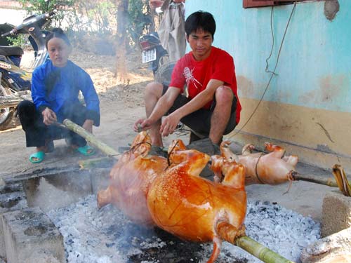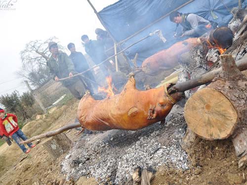 Quay một con lợn 30kg hơi cũng phải mất 2-3 tiếng, vừa ngồi quay lợn vừa bôi đều mật ong pha giấm trên con lợn và lấy que nhọn chọc dầu vào da con lợn để bì không bị nứt trong khi quay. Khi lợn chín tới, người ta dùng vải thấm nước lã lau qua mình con lợn một lượt rồi quạt lửa thật mạnh để cho bì lợn phồng lên. Bỏ lợn ra khoảng 1 tiếng cho bớt nóng và để khi chặt thịt miếng thịt bày ra đĩa không bị nát. Đĩa thịt lợn quay vàng xộm thơm lừng ngon lành đến ứa nước miếng. Cắn miếng thịt quay có vị ngọt của thịt chín tới, vị thơm của lá mác mật, vị ngậy của thịt nướng, miếng thịt được tẩm ướp đậm đà, ăn một lần sẽ nhớ mãi.