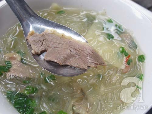 Những miếng thịt vừa nạc vừa thơm cộng với thứ nước dùng trong, ngọt thanh chính là điểm cộng hút khách của miến ngan Hàng Da.