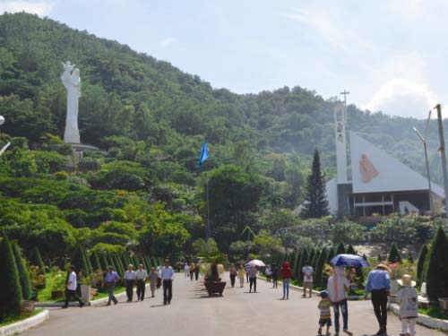 Chân núi Lớn ở bãi Dâu dốc đứng và ăn ra sát biển. Giữa màu xanh thẳm của biển và cây rừng nổi bật tượng đức mẹ Maria cao gần 30m và những tòa nhà sáng trắng.