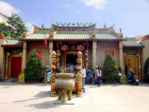 Chùa thờ nữ thần Thiên Hậu. Theo truyền thuyết được ghi ở tấm bia đá đặt ở chùa, Bà sinh vào thời Tống Kiến Long nguyên niên (Công nguyên 960), là con thứ 6 của gia đình họ Lâm ở huyện Bồ Điền, tỉnh Phúc Kiến, Trung Quốc. Khi mới lọt lòng mẹ, bà đã toả ánh hào quang và hương thơm. Lớn lên, Bà thường cưỡi thảm bay lượn trên biển và du ngoạn nhiều nơi. Đến đời Tống Ung Hy tứ niên (Công nguyên 987), năm 27 tuổi Bà từ giã cõi trần và hiển linh. Đời Nguyên, Bà được phong là Thiên Phi, đến đời Thanh, vua Khang Hy gia phong làm Thiên Hậu. Và danh hiệu Thiên Hậu tồn tại mãi cho đến nay.