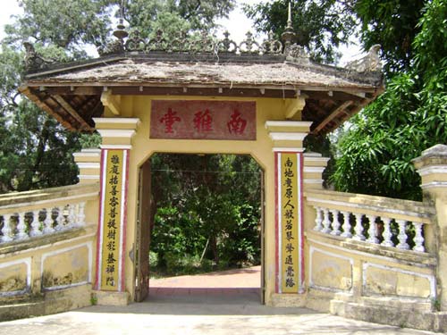 Cổng chùa được xây bằng gạch lợp mài ngói. Hai bên cột có câu liễn đối tạm dịch là: “ Nam địa độ nguyên nhân, tiếng đàn Bát Nhã thông cõi giác. Nhã đình mời thiện khách, bóng mát bồ đề phủ cửa thiền”. Hai câu đối có ý nghĩa là mời gọi người thiện tâm tu đạo nhưng sâu xa là mời gọi những người cùng chung chí hướng yêu nước.