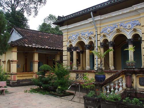 Sau chính điện là vườn cây ăn trái mùa nào thức ấy như tô điểm thêm vẻ xanh mượt tươi mát cho ngôi chùa, cùng những ngôi mộ của những người sáng lập chùa và các sĩ phu làm cho người đếm thăm có một cảm giác đất mẹ luôn ôm ấp giấc ngủ ngàn thu của những đứa con sống hết mình cho đất nước thân yêu.