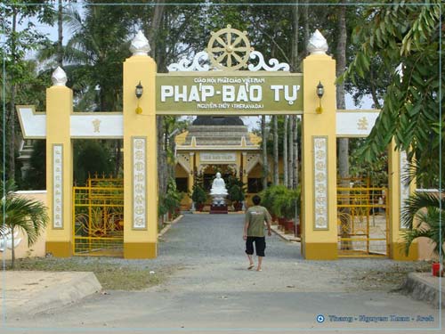 Từ bến xe Miền Tây ( TP.HCM ) , chúng tôi đi xe khách ( hãng xe Mai Linh ) tới Mỹ Tho, hơn một tiếng là đã có mặt tại ngôi chùa Pháp Bảo ( tọa lạc tại số 44 / 448 Đường Lý Thường Kiệt - Phường 5 - TP. Mỹ Tho - Tỉnh Tiền Giang ). Qua cuộc trò chuyện, Đại Đức Bửu Hiền đã cho chúng tôi biết rõ thông tin về ngôi chùa tiêu biểu của Phật Giáo Nguyên Thủy tại Tỉnh Tiền Giang.
