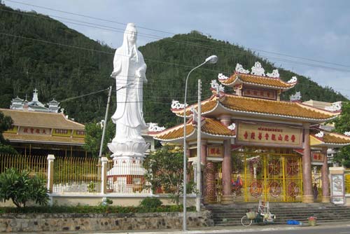 Pho tượng cao 16m làm bằng xi măng cốt sắt theo hình tượng một phụ nữ hiền hoà đức độ mặt hường ra biển tay cầm bình Cam Lồ, đứng trên toà sen. Đây là một pho tượng đẹp, và cũng là điểm tham quan của khách du lịch.