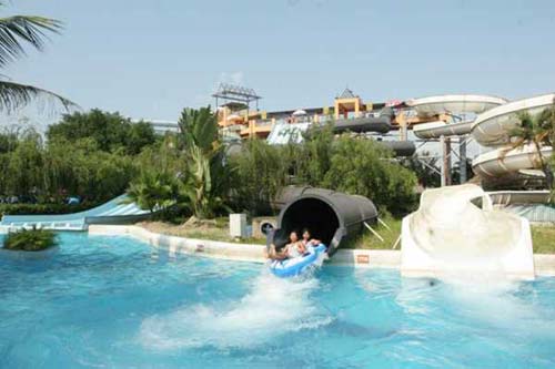 Bên cạnh các hồ bơi còn có hệ thống máng trượt, có máng trượt ba làn độ cao 6m, các loại máng trượt xoắn kín, xoắn hở độ cao 9m tạo cảm giác mạnh, từ trên cao rơi xuống hồ.