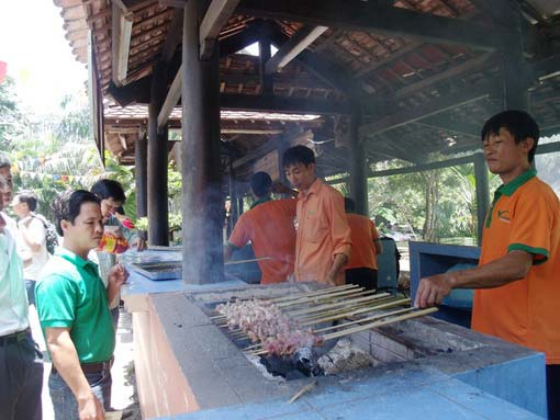 Ngoài ra, để đáp ứng nhu cầu ẩm tực của du khách, nơi đây phục vụ các loại thịt đặc sản như: thịt heo rừng, đà điểu, cá sấu… Được biết, nguồn thực phẩm phục vụ cho du khách của khu du lịch là nguồn thực phẩm tự có và từ trang trại khoảng 4 ha chuyên về nuôi heo, gà, cá, rau xanh… nằm gần kế bên.
