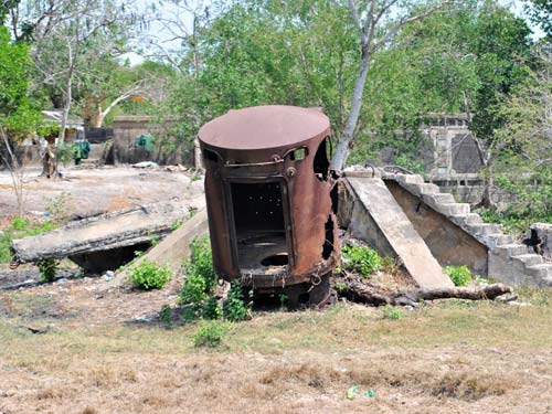 Tôi khá ngạc nhiên khi trung úy Nguyễn Hữu Nam (trưởng đồn) mời đoàn… lên nóc nhà. Nhưng khi lên đây rồi mới thấy “choáng” bởi quy mô của đồn, nhất là sừng sững trước mắt chúng tôi một ụ trọng pháo bằng thép như chiếc mu rùa khổng lồ, còn ở hai đầu hồi là hai khẩu pháo 138 mm đang “trơ gan cùng tuế nguyệt”.