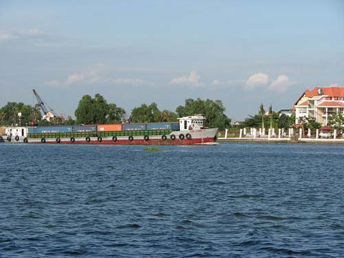 Hạ lưu sông Sài Gòn thường ngày rất nhiều tàu bè, sàlan lưu thông vận chuyển hàng hoá, cát đá v.v...Thỉnh thoảng những chuyến ghe chở những hàng gốm (bình, chậu, lu, lọ...) từ Bình Dương xuôi về miền Tây Nam Bộ. Càng đi lên phía thượng nguồn mặt sông càng phẳng lặng. Từng đám từng đám lục bình trôi dạt trên dòng nước mênh mang, trăng trắng những cánh cò. Lúc này canô đã lướt qua gầm những cây cầu lớn, nổi tiếng của TPHCM như cầu Sài Gòn, Bình Triệu, Bình Phước...