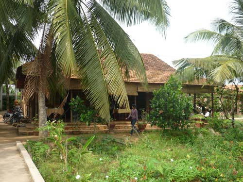 Ấn tượng đầu tiên của du khách khi mới đặt chân đến homestay này là ngôi nhà ba gian truyền thống nép bên bóng dừa với mái ngói và nền lót gạch tàu đặc trưng. Xung quanh được bố trí võng đều khắp hàng cột nhà để du khách có thể ngã lưng sau một chuyến đi dài. Không gian yên tĩnh, sự mát mẻ mang đậm chất miệt vườn Nam bộ mang lại cảm giác vô cùng dễ chịu cho du khách.