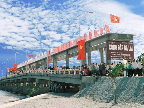 Cống đập Ba Lai (ảnh Ngọc Thạch)Vùng đất huyện Bình Đại còn có công trình cống đập Ba Lai tại xã Thạnh Trị và một phần của xã Bình Thới. Cống đập Ba Lai là một hạng mục trong hệ thống thuỷ lợi, có các công trình lớn đồng bộ, khép kín các công trình đê - cống ven sông Cửa Đại, sông Hàm Luông. Công trình với mục đích tưới tiêu, giữ ngọt, ngăn mặn cho khoảng 90.000ha đất nông nghiệp, hệ thống này sẽ phân rõ vùng mặn, vùng ngọt và sẽ thuận lợi bố trí sản xuất ở vùng mặn (nuôi thuỷ sản), vùng ngọt sẽ đưa sản xuất lúa từ 2 vụ lên 3 vụ, đồng thời tạo điều kiện phát triển kinh tế vườn. Cũng tại địa điểm này có thể tham quan trại nuôi cá sấu, heo rừng và mô hình nuôi cá lóc bông ven sông Ba Lai.