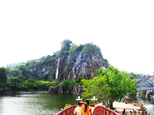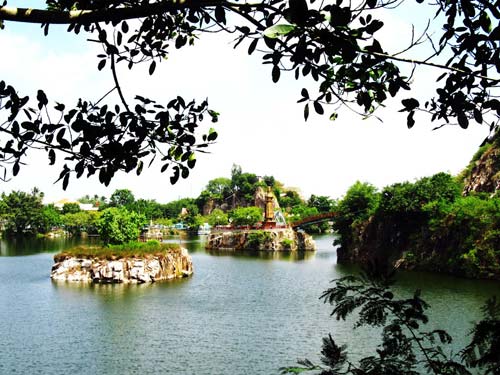 Đó là những sợi nắng vàng óng của bầu trời pha lẫn chút tím biếc của núi rừng cùng màu xanh của cây lá hoà quyện với màu lam nhạt cùa nước hồ bên dưới chân núi đã làm cho cảnh đẹp nơi đây thêm quyến luyến bước chân người.