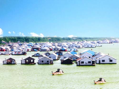 Xuồng, ghe là phương tiện chủ yếu của mỗi gia đình ở những làng nổi này, không khác gì chiếc xe máy của người dân trên bờ. Khách du lịch cũng thích đi trên các tắc ráng, vỏ lãi, hay xuồng gắn máy đuôi tôm tham quan làng nổi. Anh Cường đưa chúng tôi ghé tham quan điểm nuôi cá bè của chị Huỳnh Thị Nương, chủ nhân của 8 chiếc bè. Đến nơi đây, ngoài tận mắt chứng kiến quy trình chế biến thức ăn cho cá, chúng tôi còn thấy thích thú hơn khi thải mồi xuống bè hàng ngàn con cá vẩy đuôi tranh nhau đớp mồi, làm nước bắn tung tóe ướt sũng cả mặt sàn bè. Ngồi trên bè, hứng những luồng gió mang hơi nước mát lạnh từ ngoài sông thổi vào, dường như đã xua tan hết cái nóng bức của mùa hè.