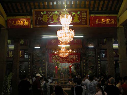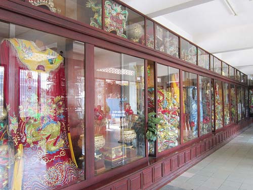 Tượng Bà đặt giữa chánh điện, đội mão sặc sỡ, mặc áo bào thêu rồng phụng, kim tuyến lấp lánh. Khánh hành hương đã dâng cúng cho Bà hàng ngàn áo mão không sử dụng hết, có cái được đặt may từ nước ngoài trị giá vài cây vàng.