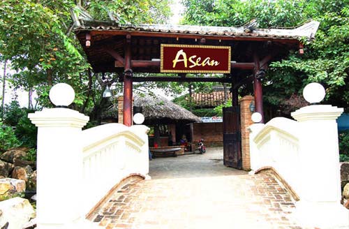 Nhà hàng – cafe sân vườn Asean được thiết kế theo phong cách kiến trúc cổ của 3 miền Bắc – Trung – Nam với nhà gỗ, nhà vườn mái lá, hòn giả sơn, ao súng và thảm thực vật vô cùng phong phú.