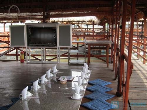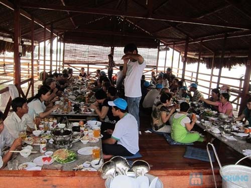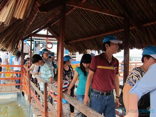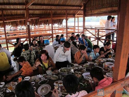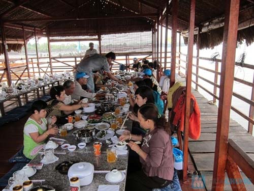 Dừng chân tại đây quý khách sẽ được đón xuống tàu khách đưa quý khách ra bè nổi, một nơi dừng chân lý tưởng mà chỉ có đến nơi quý khách mới cảm nhận hết sự độc đáo và thi vị khi ngồi trên bè nổi giữa sông, thưởng thức hải sản đặc sản vùng biển nơi đây...