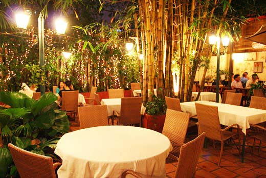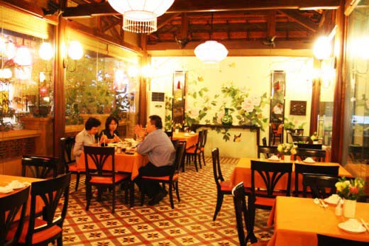 Có lợi thế về diện tích, nhà hàng được chia làm nhiều khu vực: khu sân vườn thoáng mát, trong nhà và phòng vip yên tĩnh. Một không gian đầy tiện nghi, trang nhã nhưng đâu đó bạn còn có thể bắt gặp hình ảnh đôi quang gánh, lũy tre làng, con rối nước, mái ngói đỏ tươi, hay chiếc đèn hình búp sen và những bức tranh giản dị gắn liền với văn hóa người Việt… Tất cả đều được bày trí khéo léo khiến bạn không khỏi bồi hồi, mang lại một cảm giác thân quen qua từng chi tiết nhỏ. Vào buổi tối, nhà hàng sử dụng gam màu vàng dịu và hiện đại cho toàn bộ không gian, tạo không khí thân mật và tự nhiên cho thực khách.