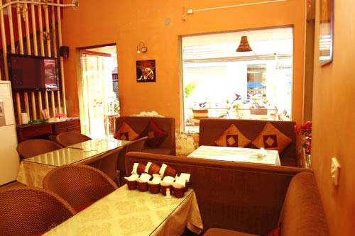 Quán được thiết kế với gam trầm làm chủ đạo nhưng luôn có sự "ngự trị" của thứ ánh sáng vàng tỏa ra dịu nhẹ bởi những chiếc đèn lồng trắng tinh khiết treo lơ lửng trên không trung khiến cho không gian thêm ấm cúng và lãng mạn. Những chiếc ghế mây bọc nỉ nền nã đứng bên cạnh chiếc bàn nhỏ xinh được trải khăn trắng màu kem sữa như những điểm nhấn làm bừng lên vẻ sang trọng, quí phái.
