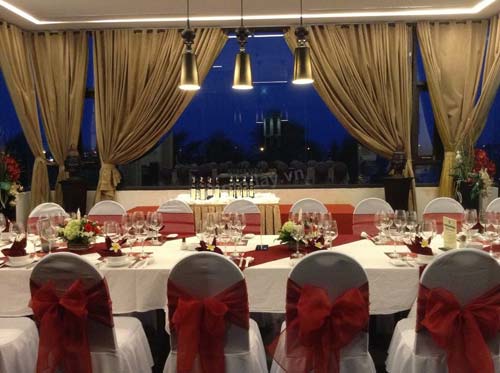 Các sảnh tiệc trong nhà được bài trí sang trọng, tinh tế, đẳng cấp và đặc biệt khu vực tổ chức tiệc cưới tuyệt đẹp ngoài trời, vô cùng lãng mạn bên thiên nhiên, cỏ cây, sông nước hữu tình.