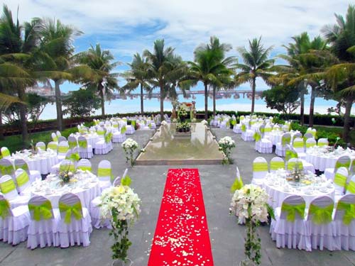 Ngoài ra, bạn hoàn toàn có thể lựa chọn cho mình một phong cách tiệc cưới theo các gam màu yêu thích và được hưởng rất nhiều quyền lợi từ những chương trình khuyến mãi cực kỳ hấp dẫn và khác biệt như: Nghi thức gắn ổ khóa tình yêu lên “Cầu khóa tình yêu” của Champa, miễn phí tiệc họ, được tặng thẻ VIP, tất cả các khách đến tham dự tiệc đều được tặng quà, miễn phí tiệc kỷ niệm ngày cưới cho cô dâu – chú rể và đặc biệt là dịch vụ miễn phí đêm tân hôn trên du thuyền Champa. Với đội ngũ phục vụ chuyên nghiệp và chi phí hợp lý, chắc chắn bạn sẽ nhận được sự hài lòng khi tổ chức tiệc cưới tại KDL Champa Island Nha Trang.