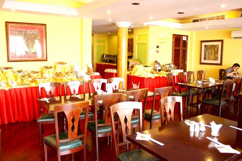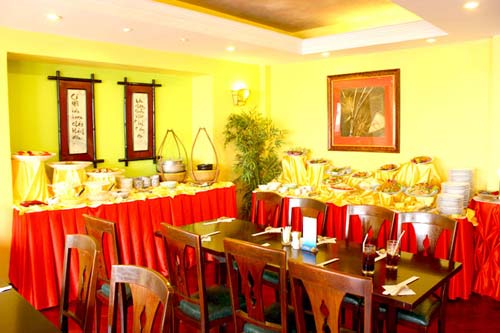 Không gian nhà hàng với gam màu vàng chủ đạo, điểm khuyết trên bàn là những lọ hoa cúc nhỏ xinh xắn mang đến sự thanh tịnh, ấm cúng và yên tĩnh rất thích hợp cho những buổi sum hợp gia đình, gặp gỡ bạn bè, chiêu đãi đối tác….